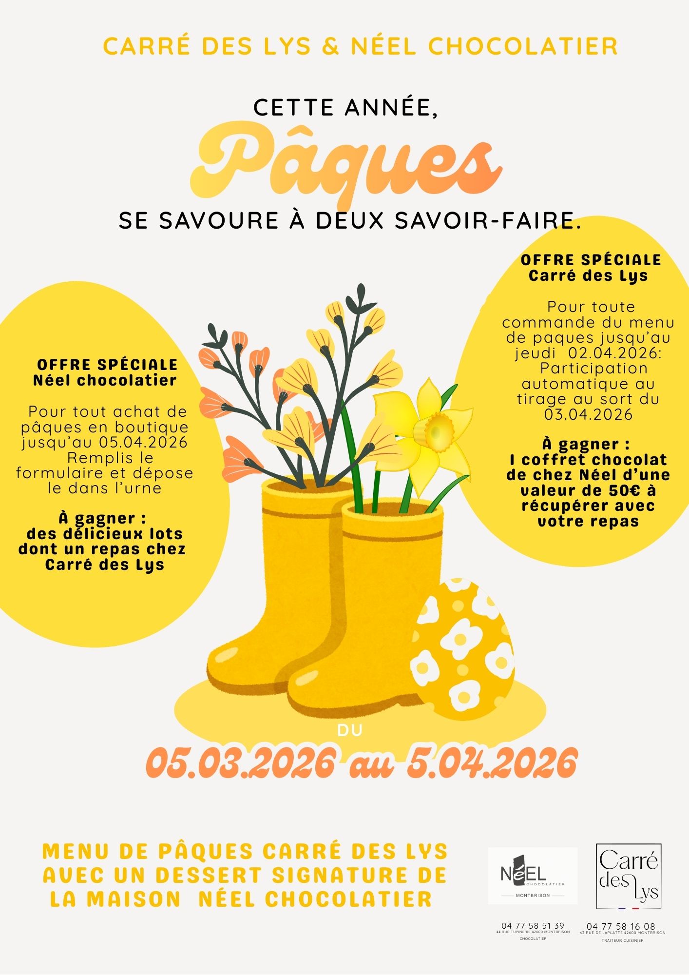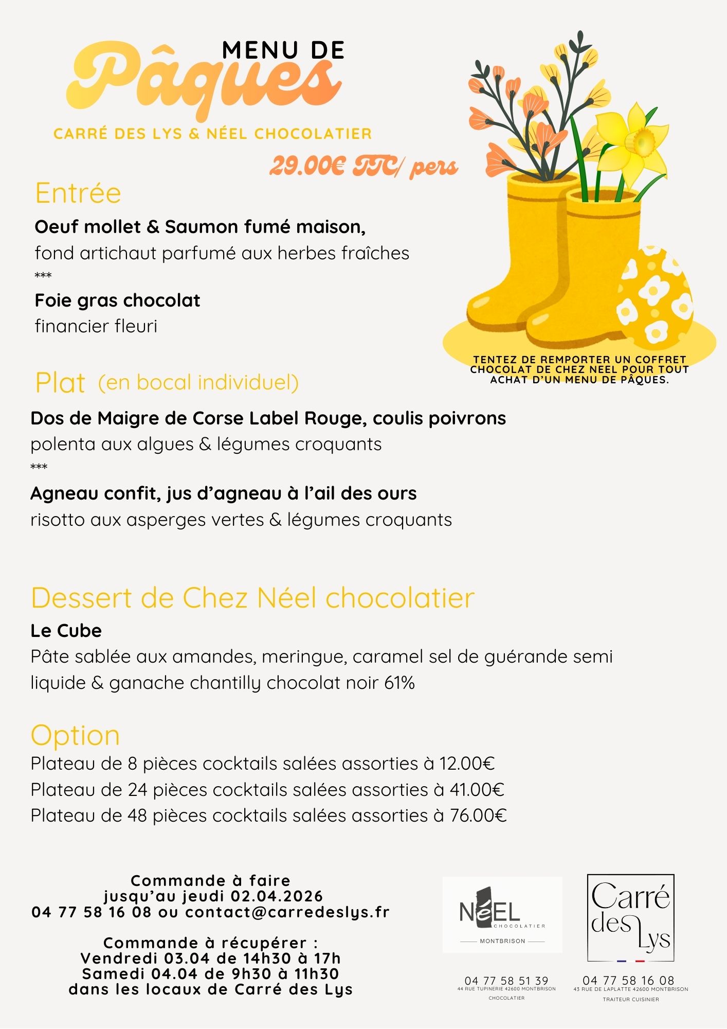 Spécial Pâques , découvrez notre Menu en collaboration avec Néel chocolatier ! . .
